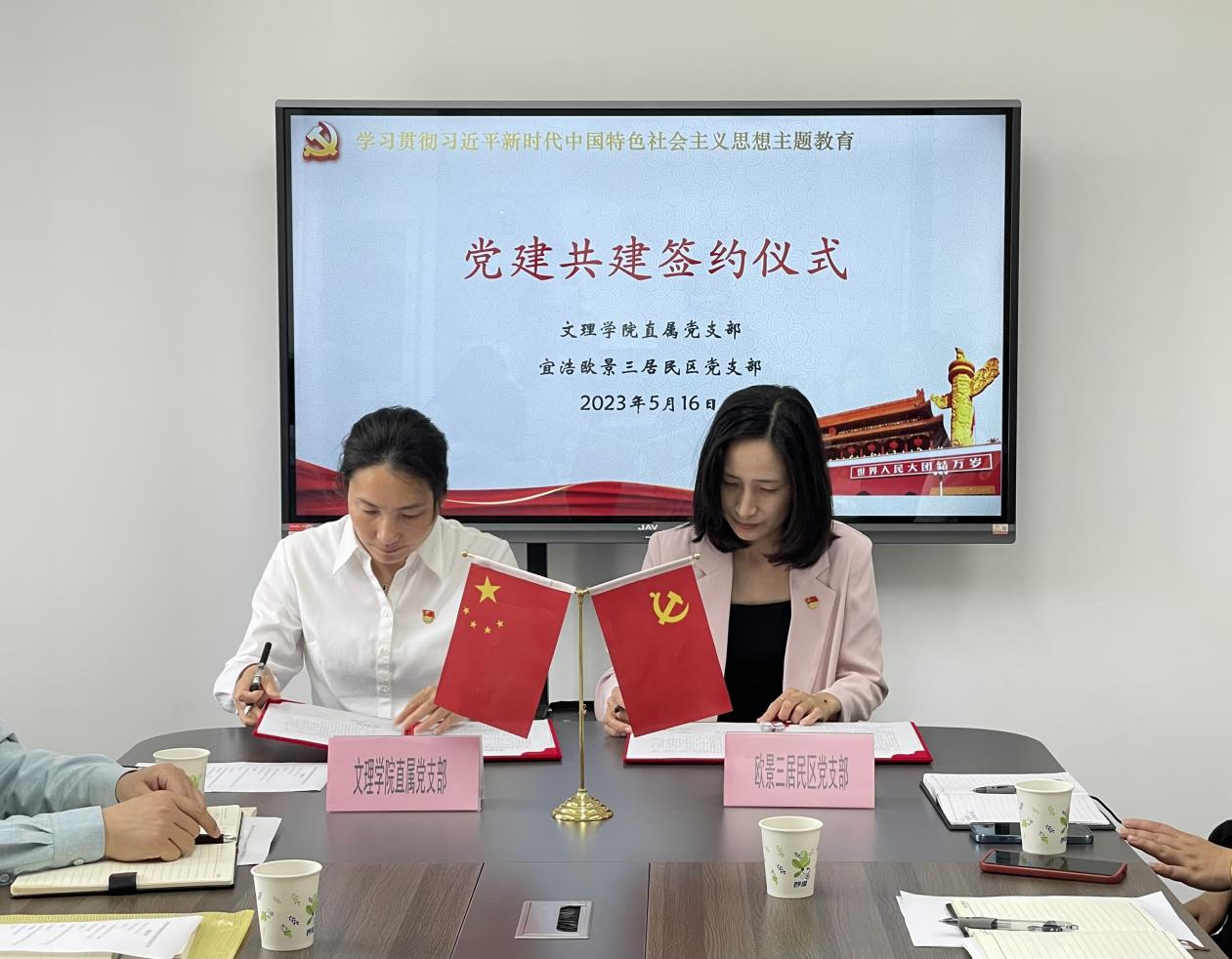 会上,德赢AC米兰直属党支部还与宜浩欧景三居民区党支部进行了党建共建签约,双方将本着“资源共享、党建共建、双向服务”的工作理念,以高质量党建引领高质量发展,推动产教城高效共建。