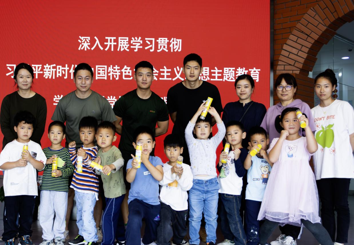 随后,由小组成员张杰,童胜哲领教军体拳。军体拳是由拳打、脚踢、摔打、夺刀、夺枪等格斗动作组合而成的一种拳术。童胜哲先示范了整套拳法,再以分解动作教授孩子们,带领孩子们反复练习。教授军体拳的过程中,还进行了训练了站姿,纠正孩子们的不良站姿。孩子们虽然年龄小,但打起军体拳来个个有模有样,一边展示军姿,一边牢记动作,激动之情溢于言表,小身体彰显着着大力量。