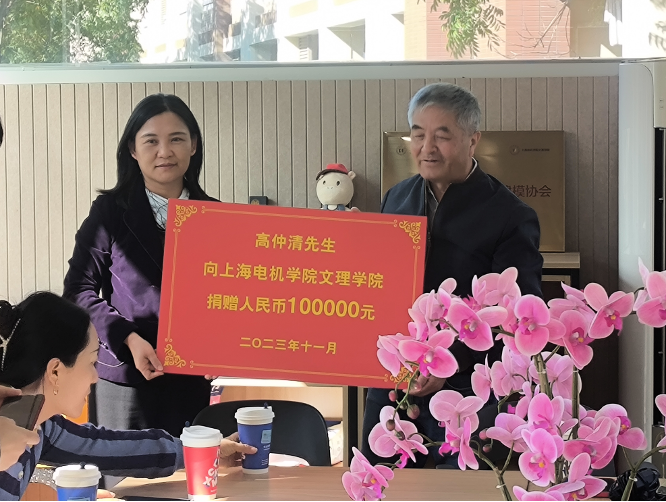 会上,高仲清校友向校基金会捐赠10万元,用于支持德赢AC米兰数学建模竞赛及学生相关创新活动,董雪静接受捐赠。
