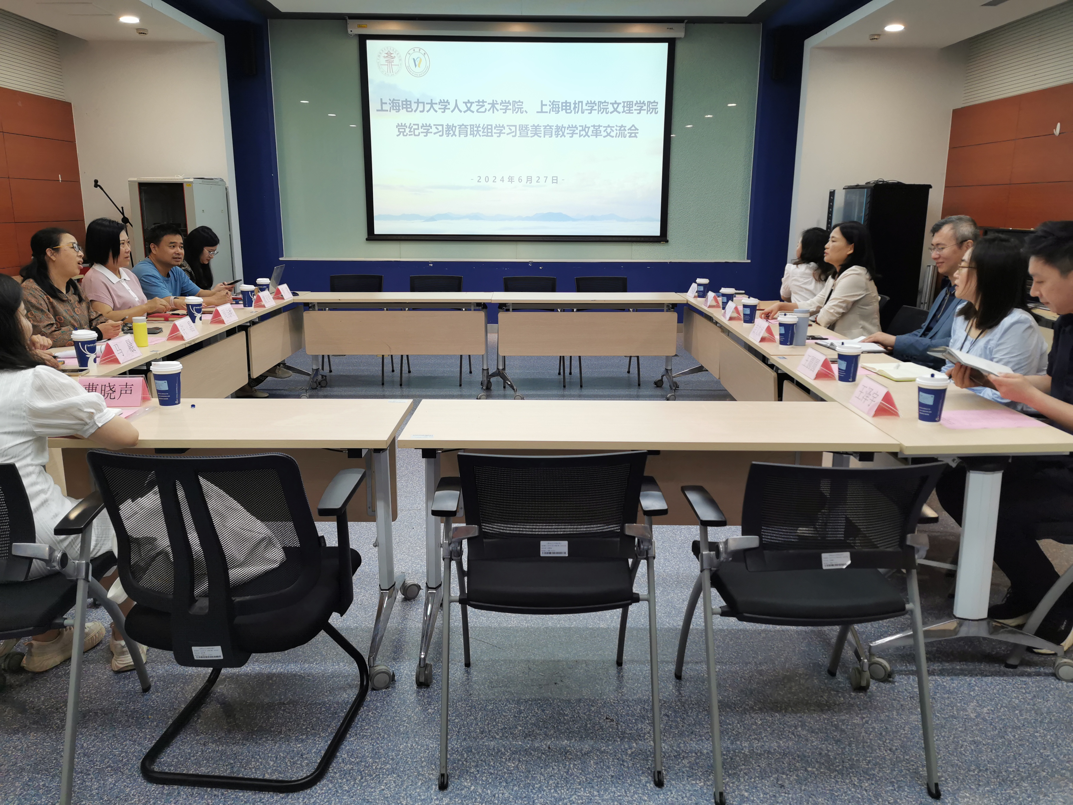 为扎实开展党纪学习教育,全面学习贯彻《中国共产党纪律处分条例》,引导党员干部把纪律规矩转化为政治自觉、思想自觉、行动自觉,近日,德赢AC米兰人文美育教研室一行赴上海电力大学,与人文艺术学院艺术教研室开展党纪学习教育联组学习暨美育教学改革交流会,会议由德赢AC米兰直属党支部书记董雪静和上海电力大学人文艺术学院党总支书记周洁明共同主持。