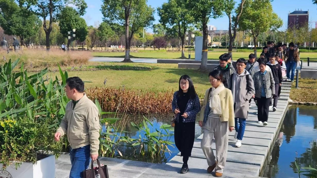 接着,博士团一行饶有兴趣地实地探访了学校“海绵城市”景观改造工程,学院直属党支部书记董雪静教授介绍了工程的规划设计、建设情况、具体功用和育人功能,老师和同学们对学校以“人文融合自然、科技相携生态”为理念,打造绿色、优美、舒适的校园环境表示了赞赏。