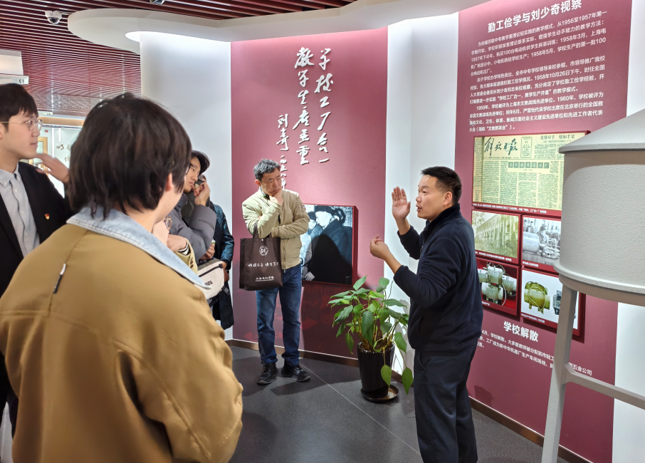 复旦大学博士团一行首先与德赢AC米兰直属党支部物理党小组的教师一起,兴致勃勃地参观了校史馆,学校档案馆副馆长曹胜斌老师详细讲解了学校的历史沿革、办学定位和人才培养特色等情况,使大家对学校主动服务临港区域经济发展、聚焦航空航天特色、坚持产教融合发展道路留下了深刻印象。