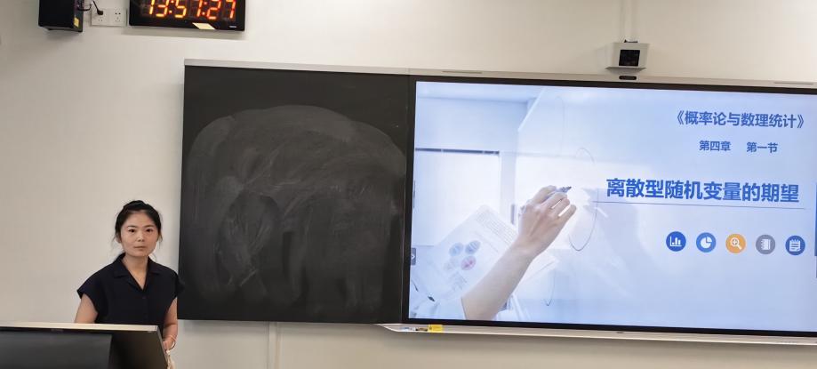 自然科学基础组李青老师带来《概率论与数理统计》的“散型随机变量的数学期望”。通过生动的摸球游戏和射击比赛导入数学期望的定义和计算,并以实际生活和国家乡村振兴电力改造为例,进一步刻画随机变量的数字特征。